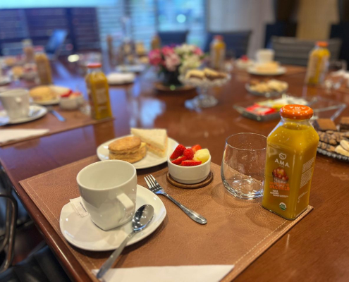 Un desayuno corporativo bien pensado no solo alimenta: motiva, une y demuestra preocupación por quienes hacen crecer tu empresa. En Chocolate Café, cada desayuno es una experiencia diseñada para comenzar la jornada con una sonrisa. Ofrecemos variedad, frescura y un montaje impecable, ideal para reuniones ejecutivas, celebraciones internas o simplemente para sorprender a tu equipo en la mañana. Porque cuidar los detalles también es una forma de liderar.